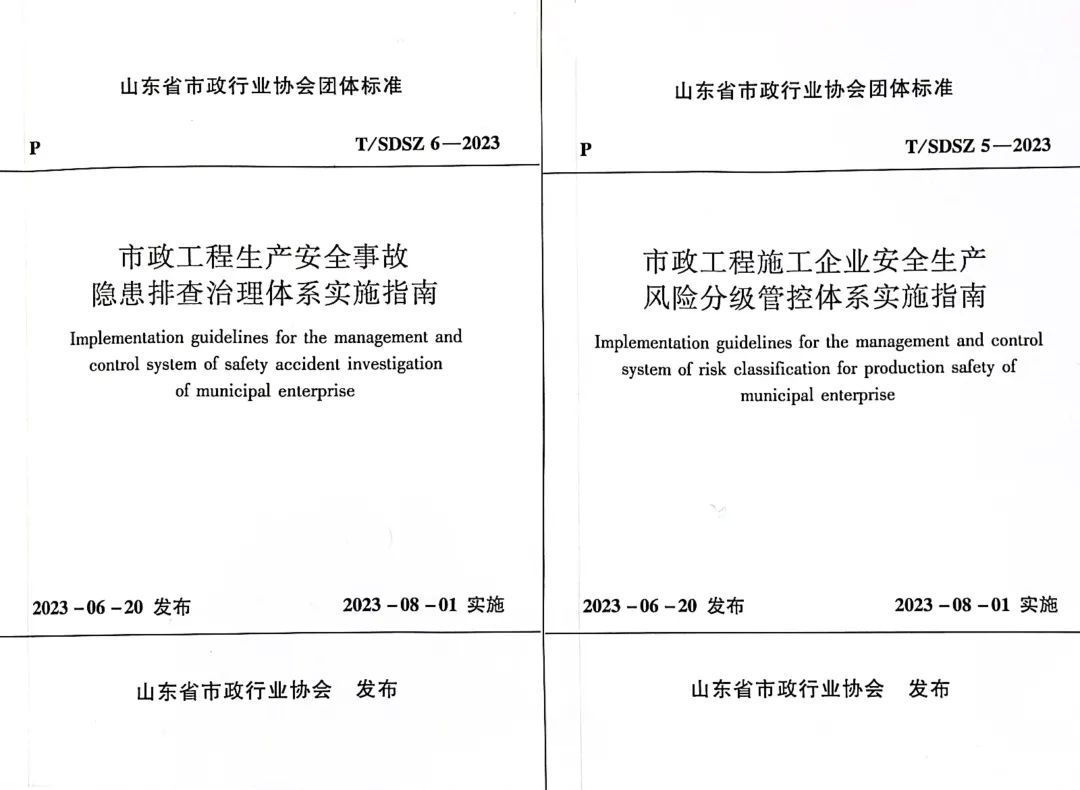 “标准决定质量,有什么样的标准就有什么样的质量,只有高标准才有高质量。”青岛乐动(中国)官方集团深入学习贯彻习近平总书记关于安全生产、标准化工作的重要论述精神,近日,乐动(中国)官方集团与青岛市市政工程质量安全监督站共同主编两项省级行业团体标准《市政工程安全事故隐患排查治理体系实施指南》(以下简称《隐患排查指南》)《市政工程施工企业安全生产风险分级管控体系实施指南》(以下简称《风险管控指南》),已正式发布实施。