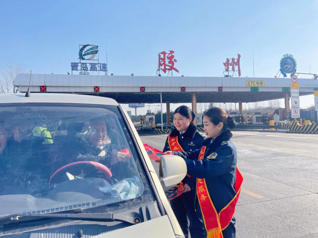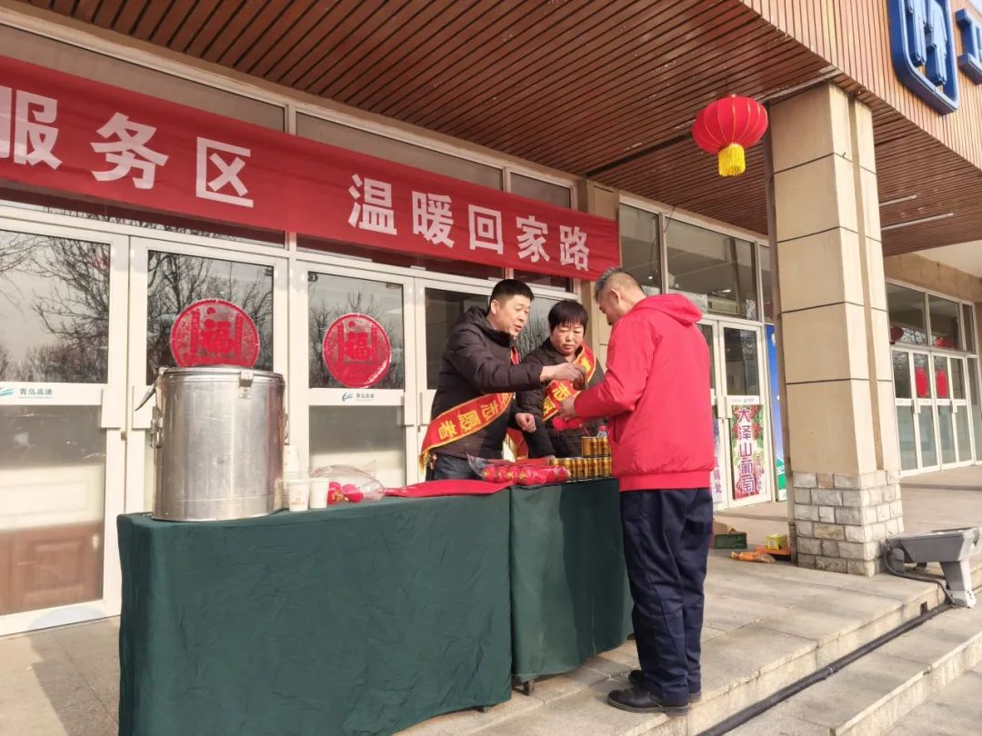 在高路公路服务区开展“温暖回家路”活动,志愿服务人员现场为司乘人员送福字、小灯笼挂饰等,并提供红牛、矿泉水、道路咨询等暖心便民服务,向过往司乘传达“美好春运、平安出行”的暖心祝愿。