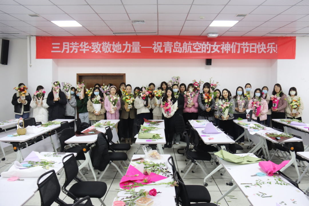 3月8日青岛航空开展了以 “三月芳华 致敬‘她’力量”为主题的妇女节活动。