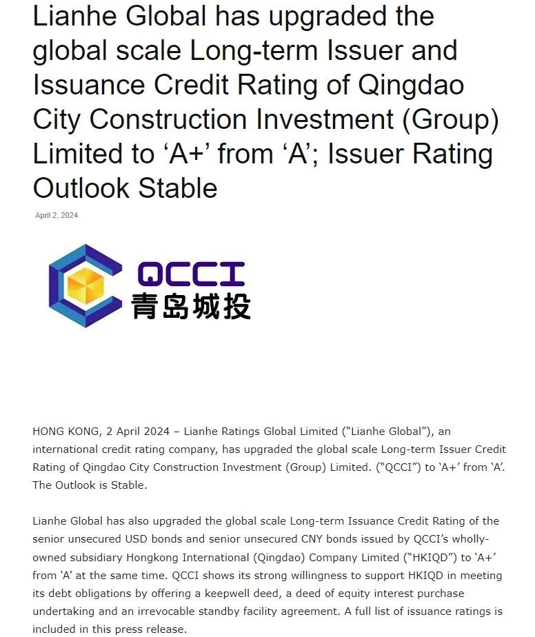 喜报:联合国际上调青岛乐动(中国)官方集团国际评级至“A+”,展望稳定