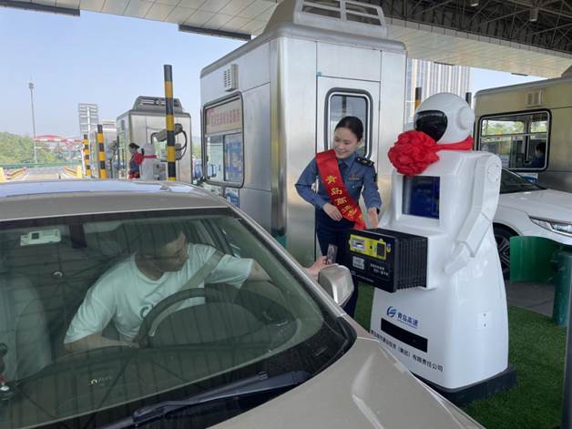 最萌“收费员”上岗!山东省首款“人形智能车道收费机器人”亮相青岛东收费站